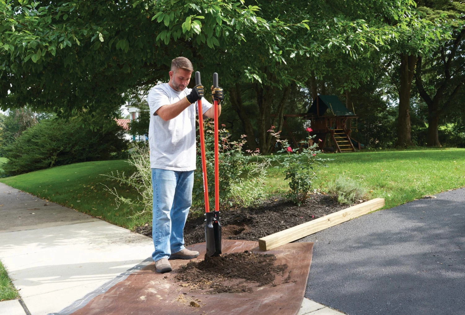 - After inserting blades as far as possible, pull the handles apart and lift to remove soil