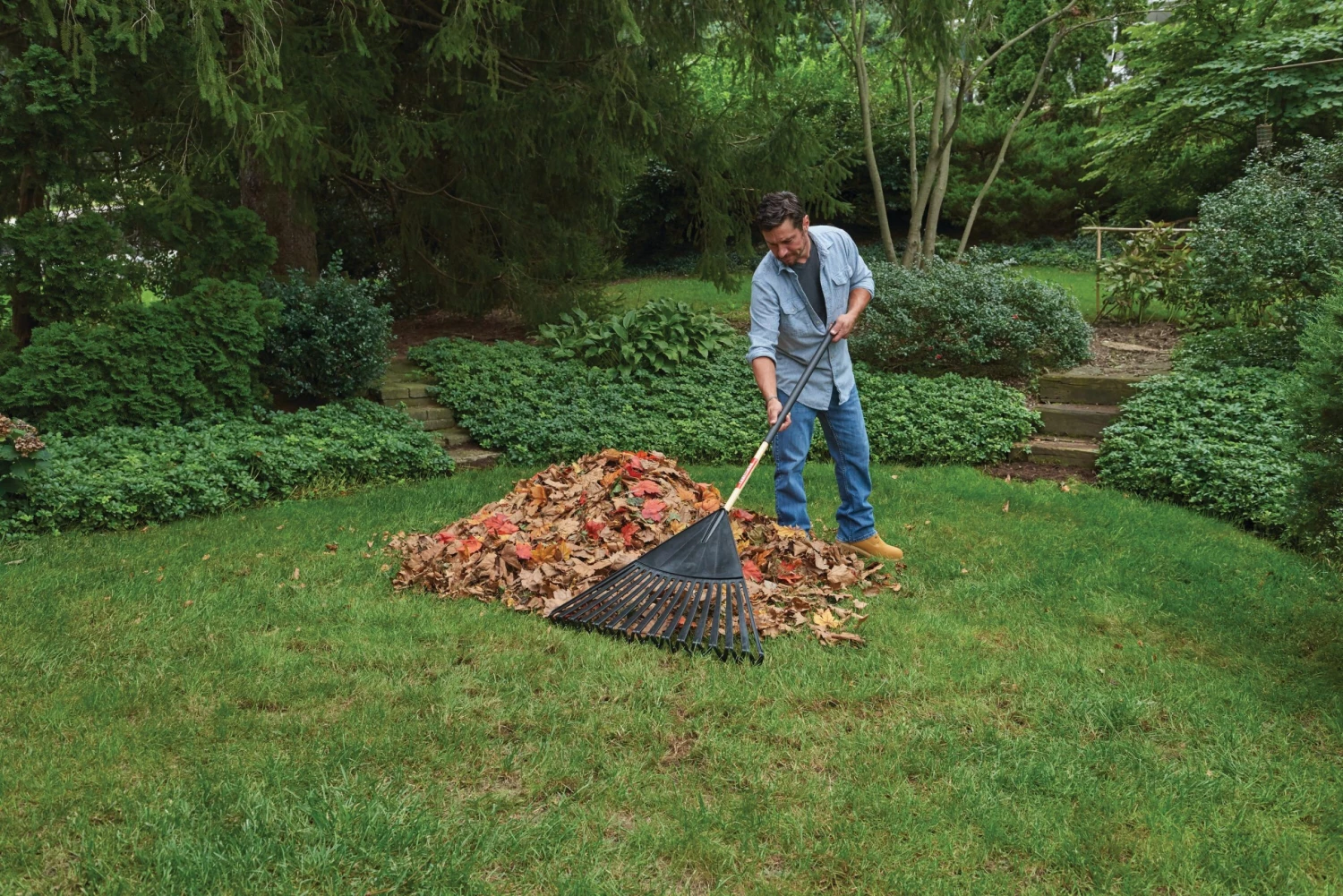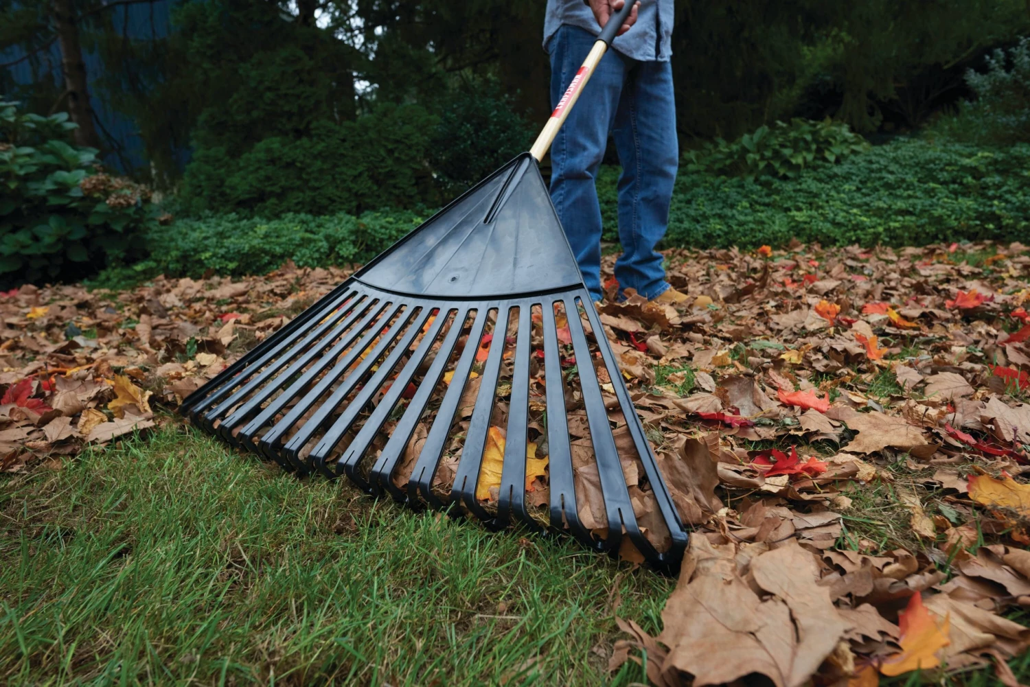 - 30-In head with clog-free teeth design to prevent leaves from sticking to rake and slowing you down