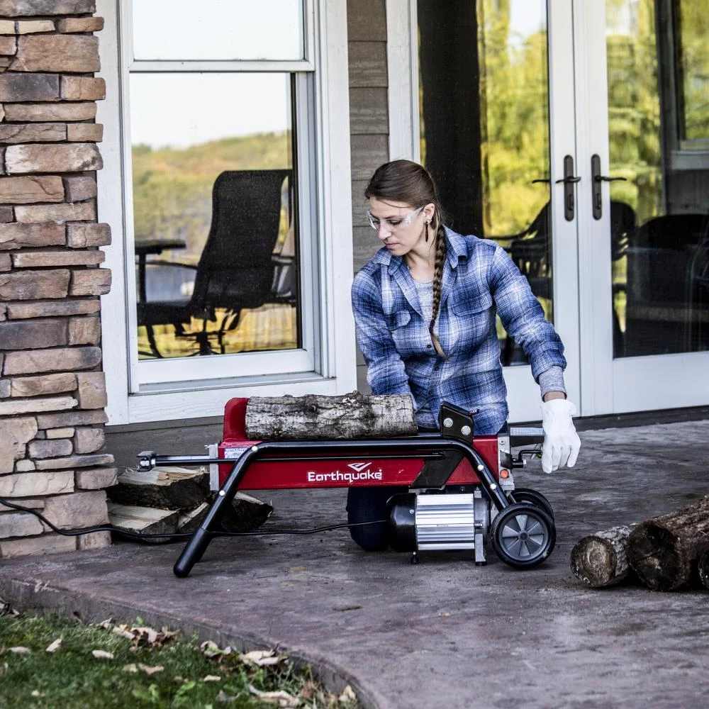 Splitting wood has never been easier with the Earthquake® 5-Ton Log Splitter. With 5 tons of splitting force, you can conquer a variety of wood splitting tasks from cutting kindling for your campfire to chopping up pieces to fuel your wood stove. Gas free, fume free and simple to operate- this unit is driven by a 1500-Watt electric motor that requires only a standard 120V outlet for all the power you need to accomplish your task. You can count on a constant splitting force because this unit is made from precision hydraulic components and high-quality materials like copper motor windings. In addition to being a great performing machine, this unit is also incredibly transportable and can be moved from job to job by simply lifting up on the front legs and rolling the unit to the next location. Backed by a 5-year limited warranty, the Earthquake® 5-Ton Log Splitter offers power and versatility that ensures a splitting experience that will save you time and add to the enjoyment of heating with wood