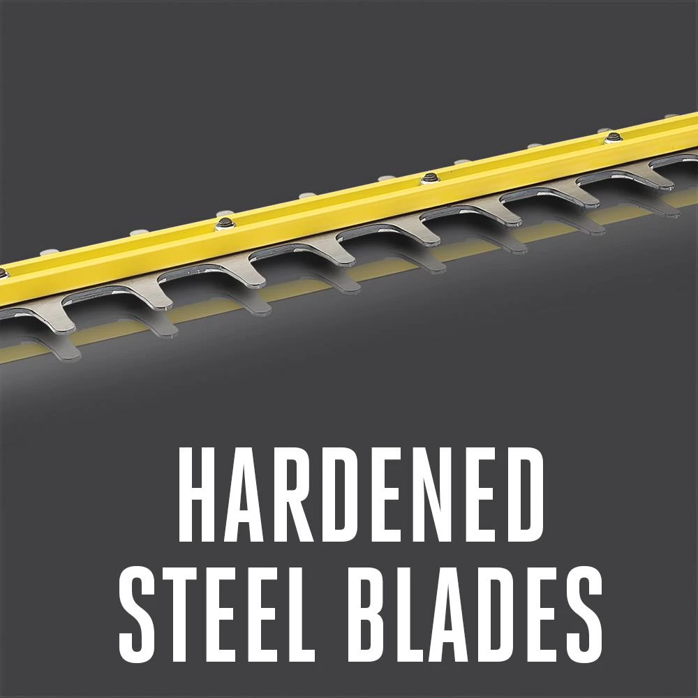 The world’s first cordless hedge trimmer with a 1″ cut capacity! The EGO POWER+ Hedge Trimmer has a hi-efficiency brushless motor which allows for longer run times and lighter weight. The 24″ dual action, hardened steel blades for precise, clean cuts. The trimmer is also equipped with fully serviceable blades to make sharpening quick and easy. Delivering 3,000 strokes per minute to get the tough jobs done faster. Featuring ‘s industry-leading ARC Lithium™ Battery Technology compatible with all ARC Lithium™ batteries to maximize the convenience of cordless and deliver Power Beyond Belief™.