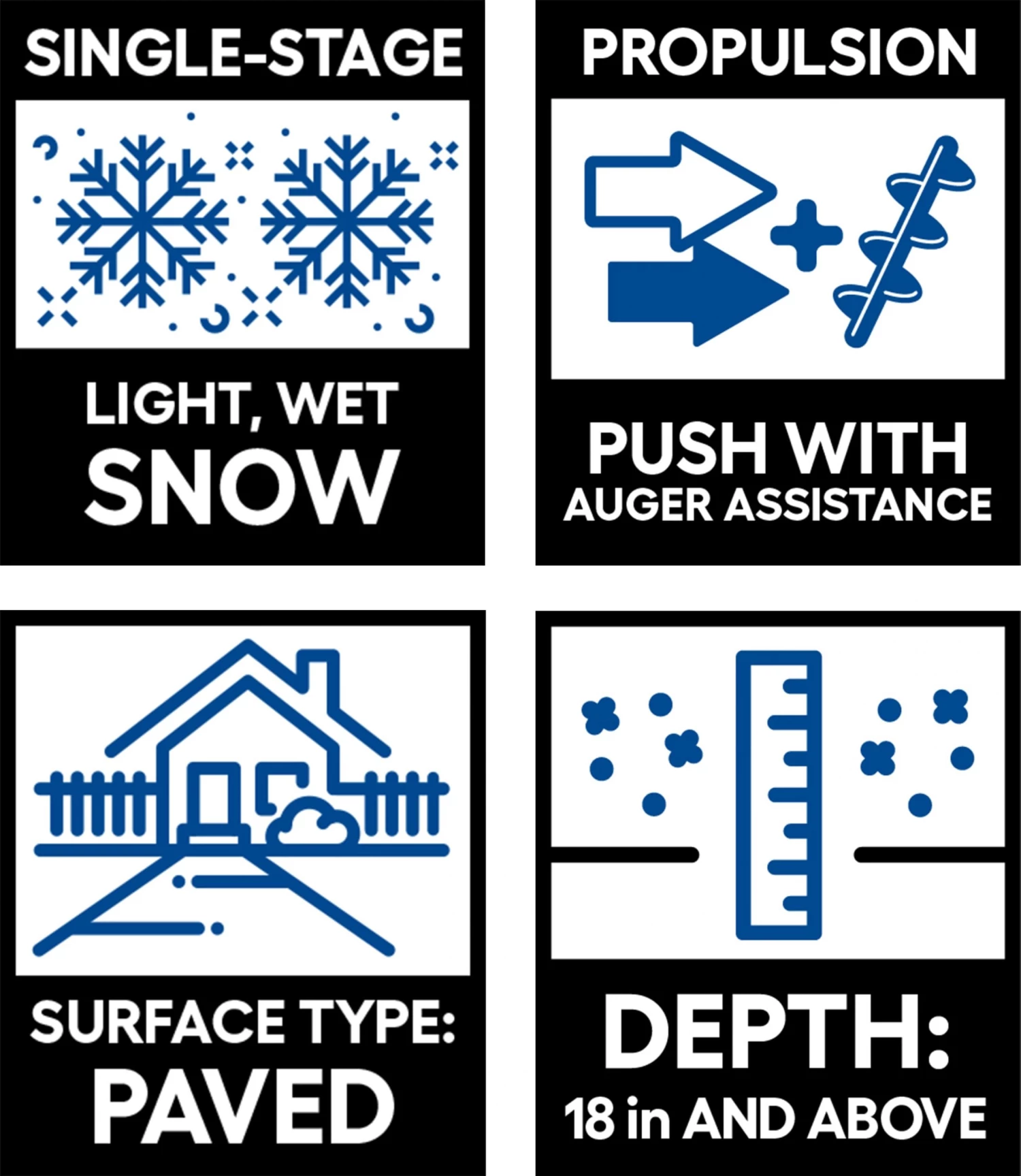 - Single-stage corded snow blower capable of a 20-in clearing path and up to 10-in clearing depth