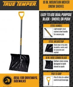 True Temper Lawn & Garden Hand Tools 18-in Poly Snow Shovel with 36-in Steel Handle