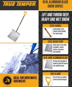 Ames True Temper Lawn & Garden Hand Tools 18-in Aluminum Snow Shovel with 36-in Steel Handle