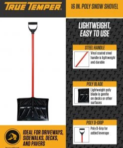 True Temper Lawn & Garden Hand Tools 16-in Poly Snow Shovel with 36-in Steel Handle