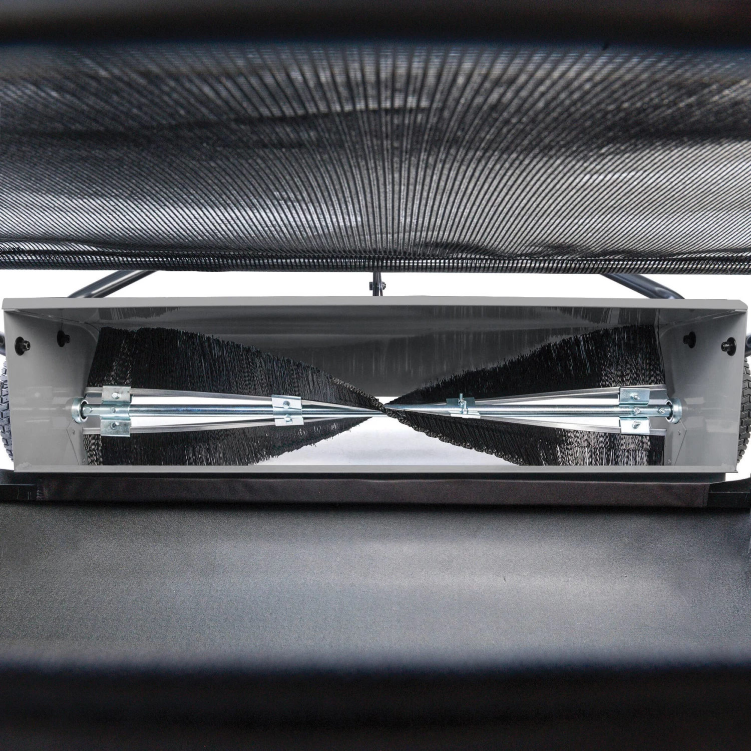 This lawn sweeper clears your yard of leaves, grass clippings, pine needles and cones, sticks, twigs and acorns. Features an extra-large capacity 22-cu ft heavy-duty collector bag and a 42-in sweeping path allowing you to get your lawn care finished quickly. The exclusive patented spiral brush sweeps more efficiently than standard sweepers and puts less stress on gears for longer life. “No-slip” positive lock height adjustment will not vibrate out of position and has easy-to-remember height settings. Hopper empties by pulling rope from the seat of your tractor – just reverse to debris or compost area, pull the rope and you’re done! Extra-wide 9 in chute is less likely to clog, especially when sweeping damp grass clippings that can clump together. 3-Position hitch adjustment allows for efficient level operation with any tractor hitch height – without the use of easy to lose spacer rings. The sweeper stands upright and bag folds for compact storage.