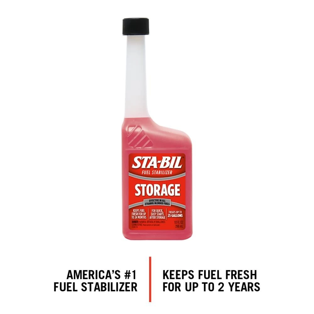 STA-BIL fuel stabilizer keeps gas fresh for up to 24 months. This eliminates the need to drain fuel before storing your equipment and ensures quick easy starts the next time you go to fire it up.