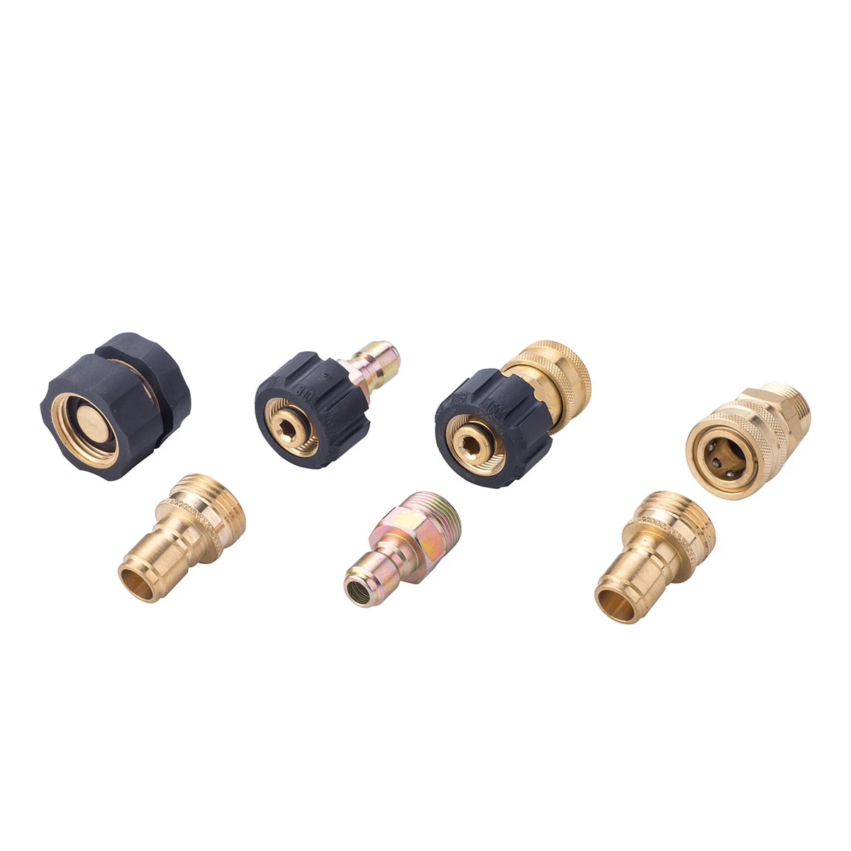 - 7 Total pieces which includes: four – M22 x 14mm components for pressure washer hose, pressure washer inlet, and spray gun; three – 3/4-inch GHT components for garden hose hook up